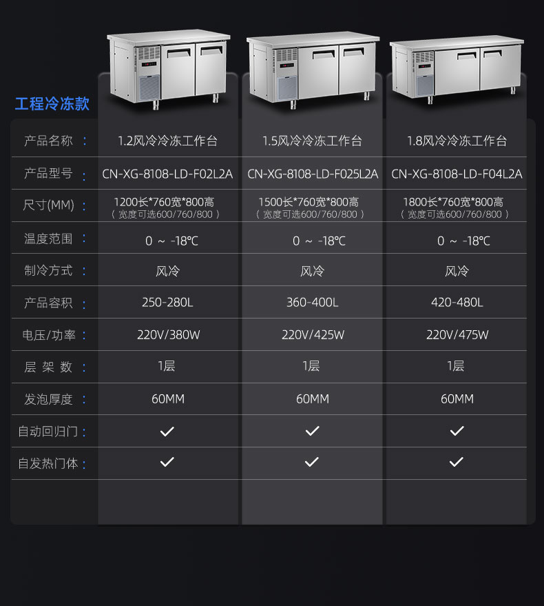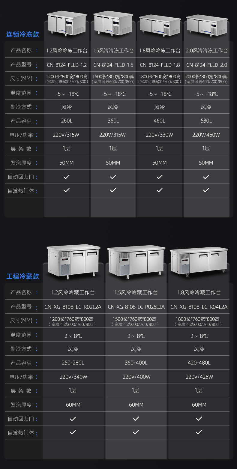 (直冷/風(fēng)冷)冷凍操作臺(tái)(工作臺(tái))