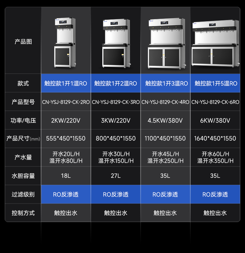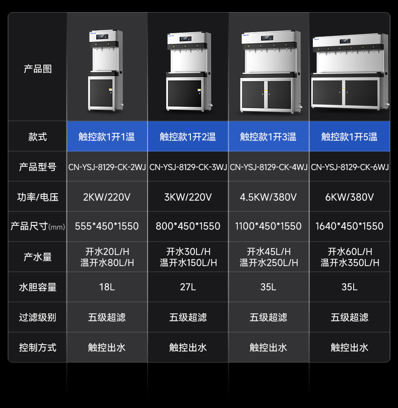 產(chǎn)水量:開水60L/h 溫開水350L/h
