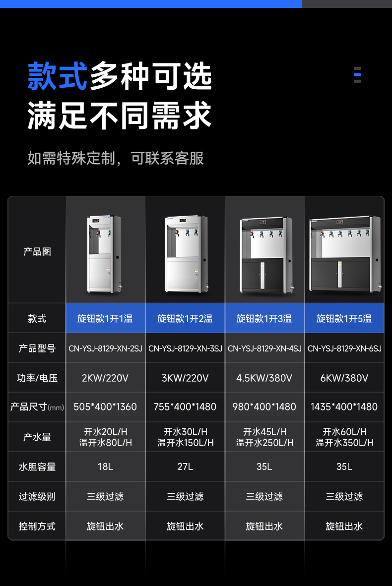 產(chǎn)水量:開水45L/h 溫開水250L/h