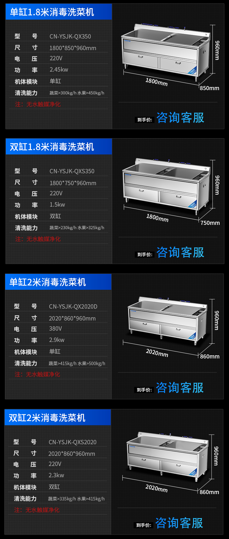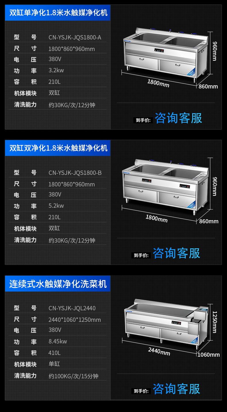 雙缸1.8米消毒洗菜機(jī)(無(wú)水觸媒凈化)