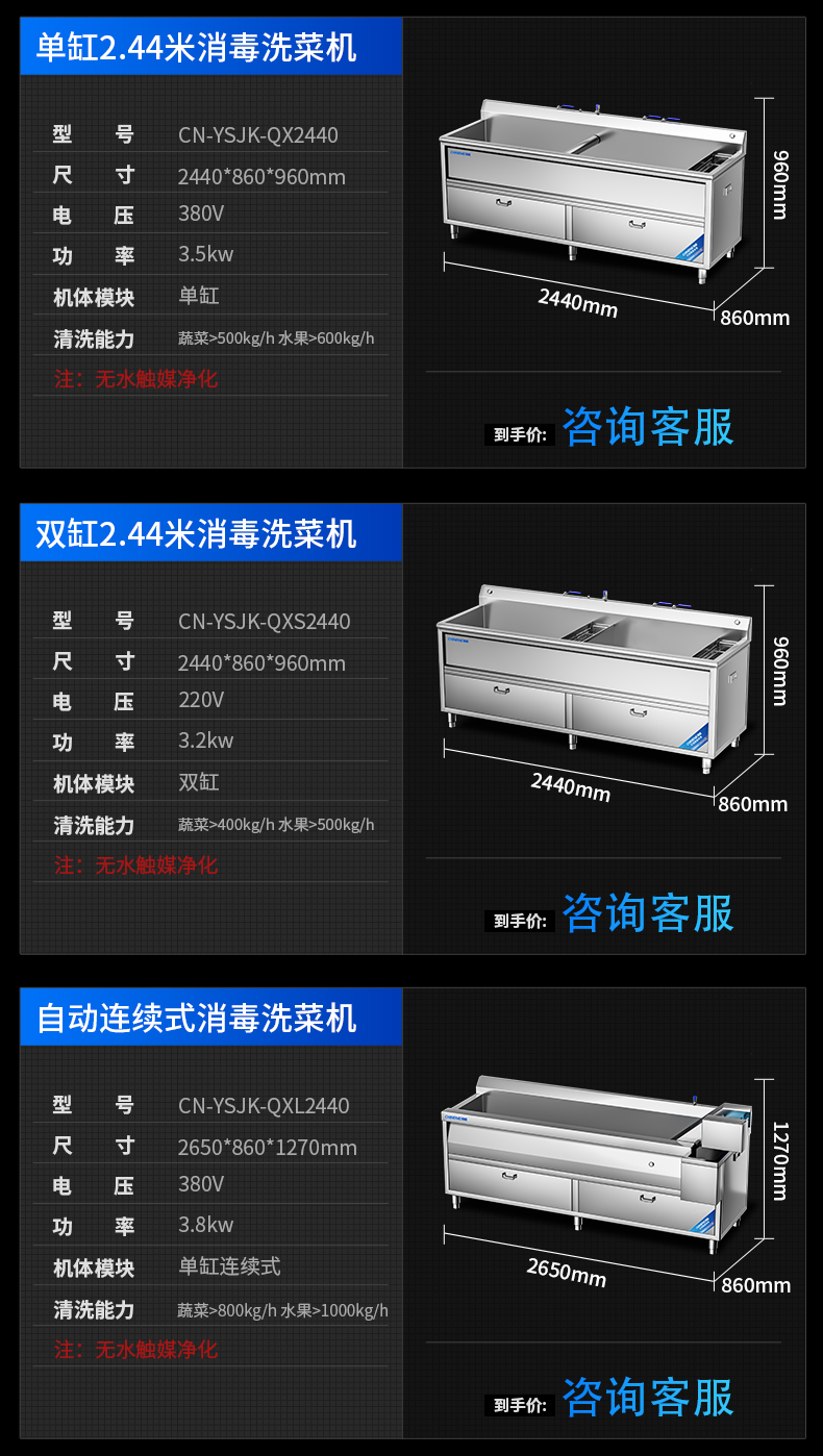 單缸2.44米消毒洗菜機(jī)(無(wú)水觸媒凈化)