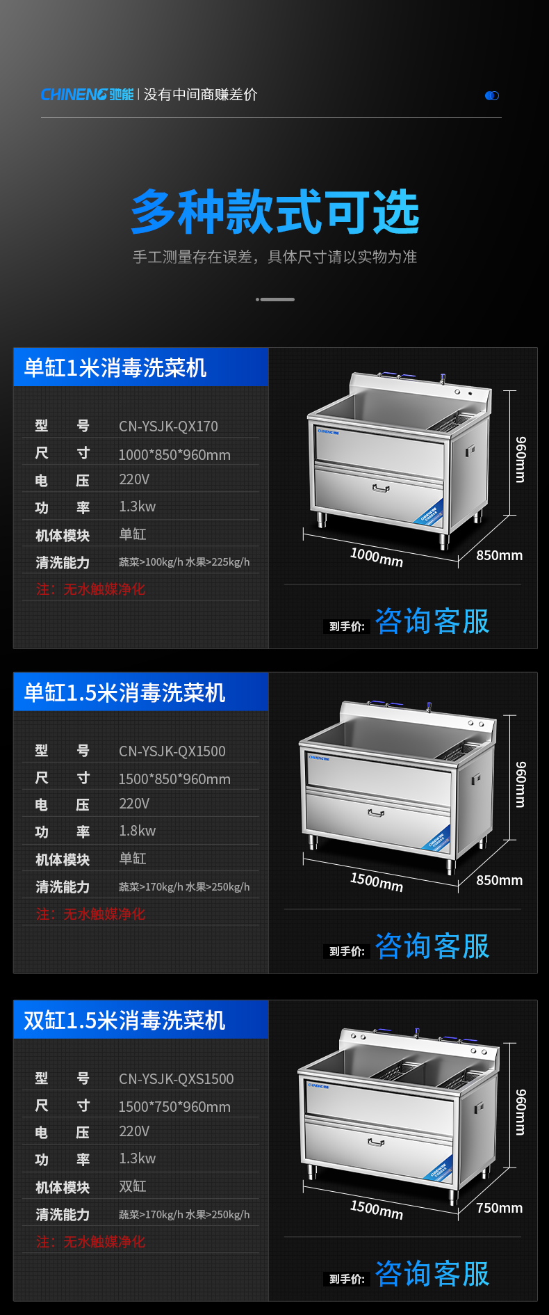 單缸1.5米消毒洗菜機(jī)(無(wú)水觸媒凈化)