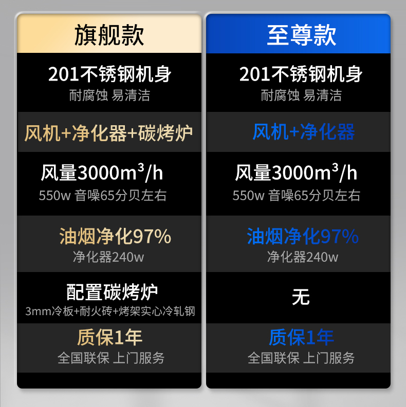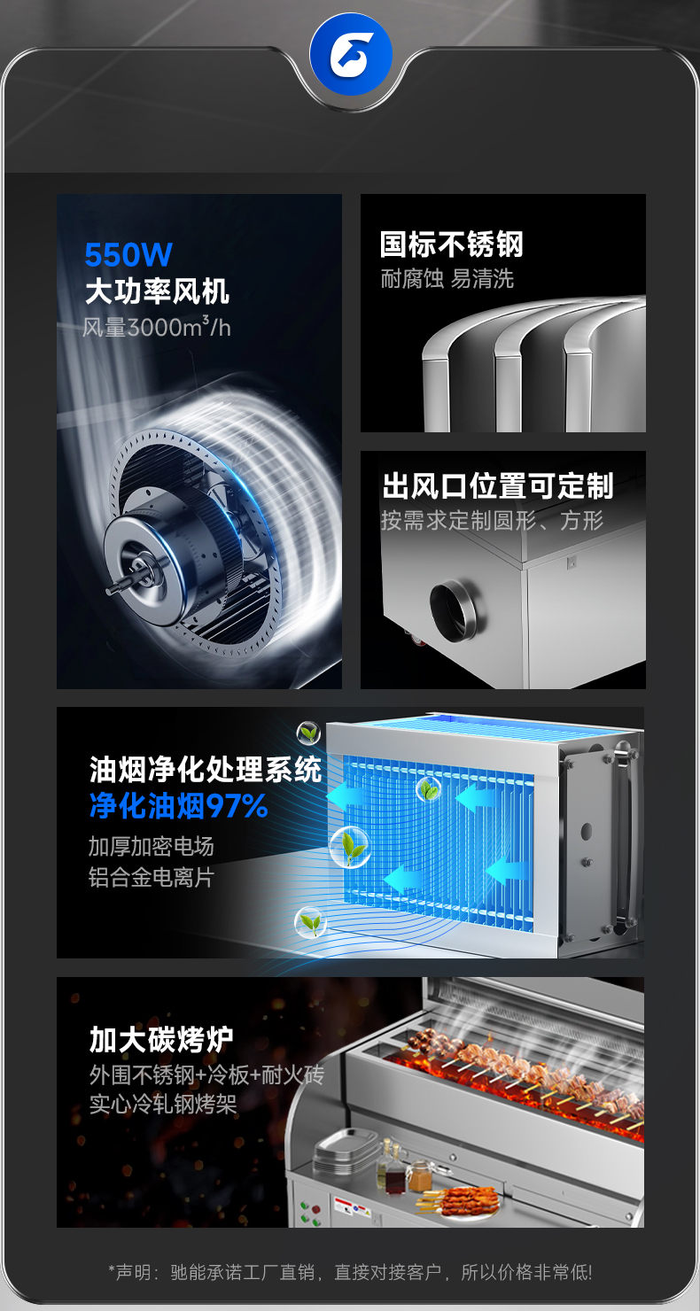 配置:風(fēng)機(jī)+凈化器*2+炭烤爐