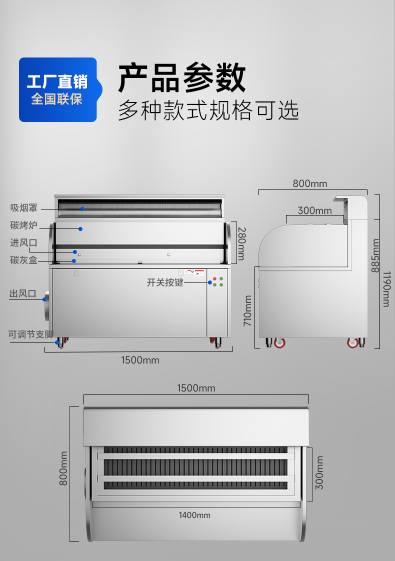 配置:風(fēng)機(jī)+凈化器*1+炭烤爐